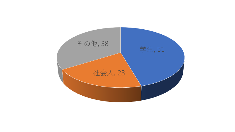 割合にすると、学生:48.6%、社会人:21.9%、その他:29.5%となる。