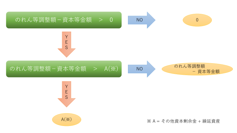 min( A , max( 0 , のれん等調整額 – 資本等金額 ) )