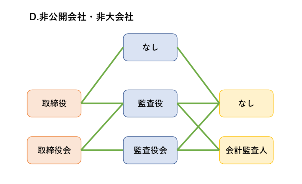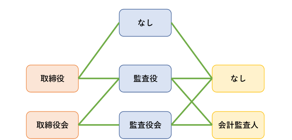 可能な機関設計の組み合わせは、次のA~Dに分けて把握することができる。