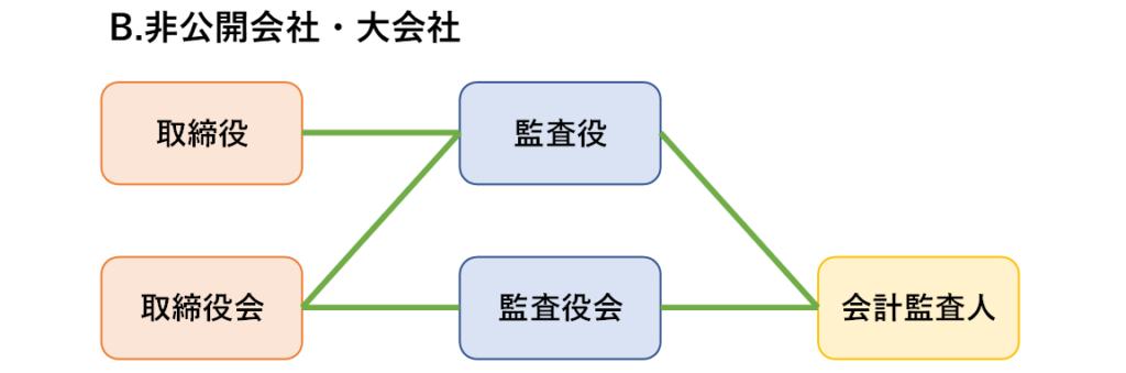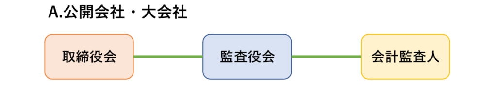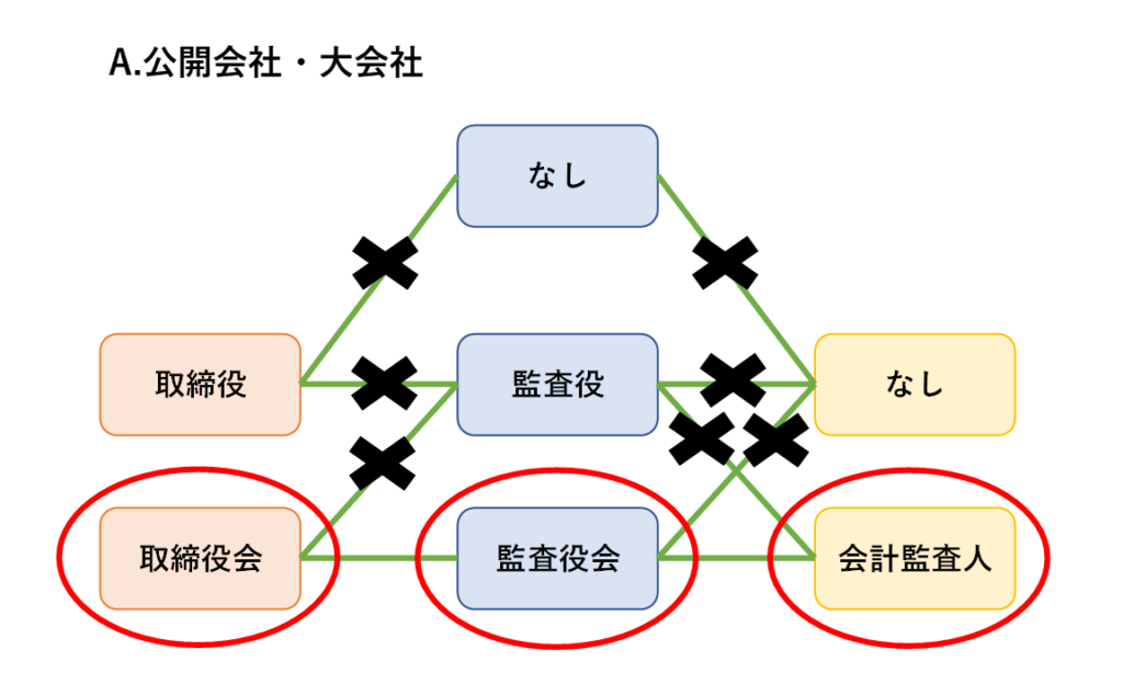 ・『監査等委員会設置会社』と『指名委員会等設置会社』は「取締役会」+「会計監査人」の組み合わせに限られるので、上記の考え方は使えない。