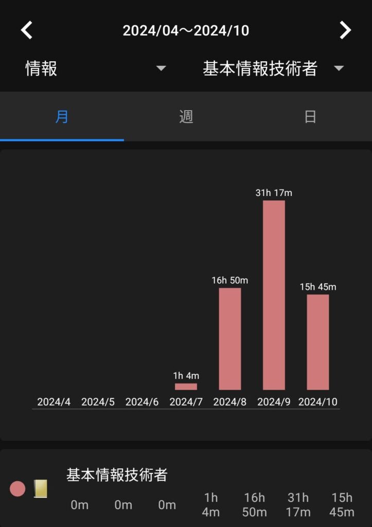 7月から10月まで4ヶ月かけて、合計65時間勉強した。