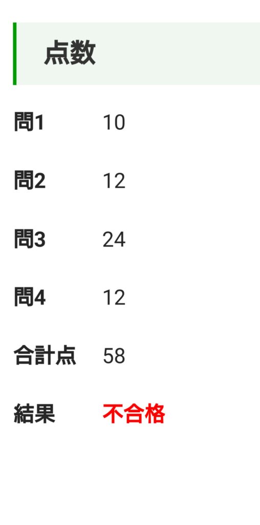 前回の36点から58点に上がったことを考えれば成長してると捉えていいのかな。