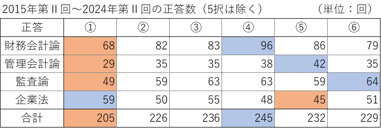 2015年第Ⅱ回~2024年第Ⅱ回の正答を集計した。