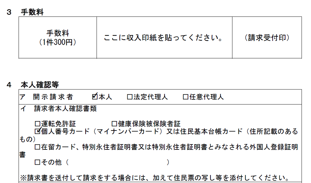 ③:請求件数×300円(収入印紙)+ 住民票の写しの発行費 + 送付費用 + 開示書類返信費用