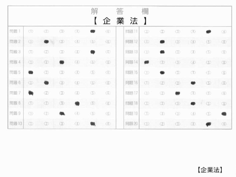↓マークシート(開示資料原本は名前や受験番号部分も載っているが、解答欄のみ抜粋)