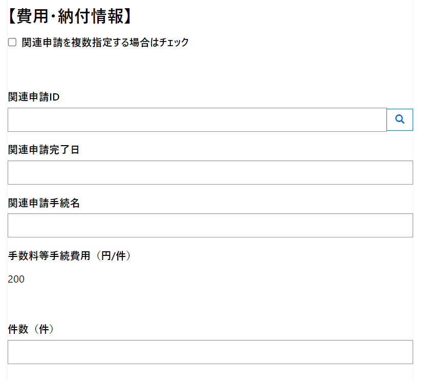 関連申請IDの右にある虫眼鏡マークをクリックすれば、③で申請したものが出てくるため選択する。