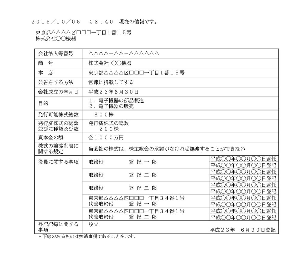 実際に閲覧した登記をここで公開するのは問題あると思うので避ける。